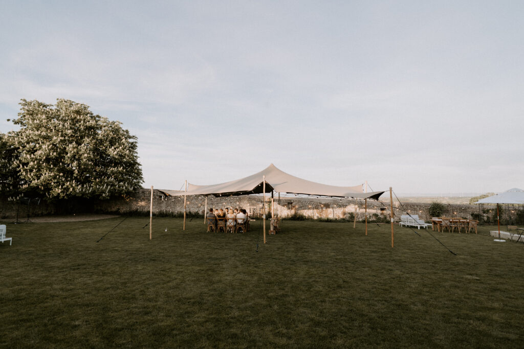 Eine Outdoor Wedding im Herbst ist möglich, erfordert aber gute Planung. Stellt sicher, dass eure Location einen überdachten Plan B bietet oder organisiert ein beheiztes Zelt. Für die Zeremonie draußen sind Heizstrahler nötig, damit eure Gäste nicht frieren. Plant etwa einen Heizstrahler pro 10 bis 15 Quadratmeter ein.
