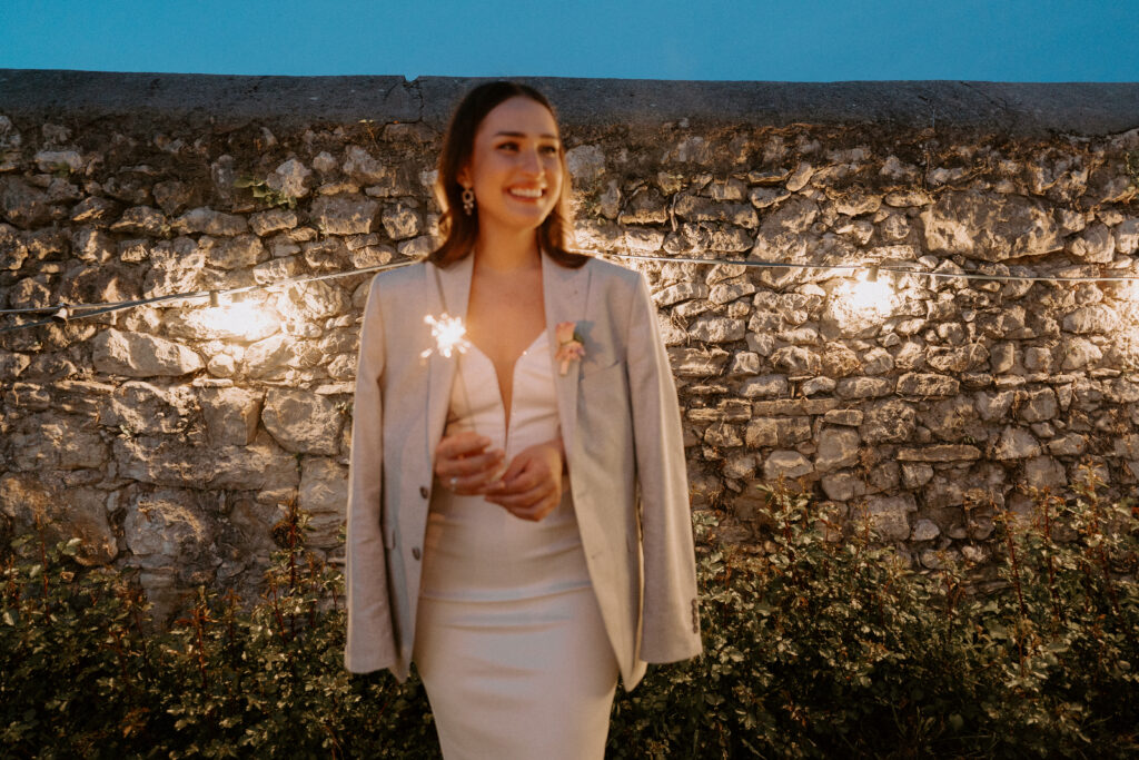 Überlegt auch, ob ihr Feuerschalen oder eine Feuerstelle einrichten wollt. Das sorgt für Wärme und eine Stelle, um die sich Gäste versammeln können. Besonders auf einem Weingut oder bei einer Outdoor-Hochzeit mit rustikalem Charakter passt das gut zur Jahreszeit.