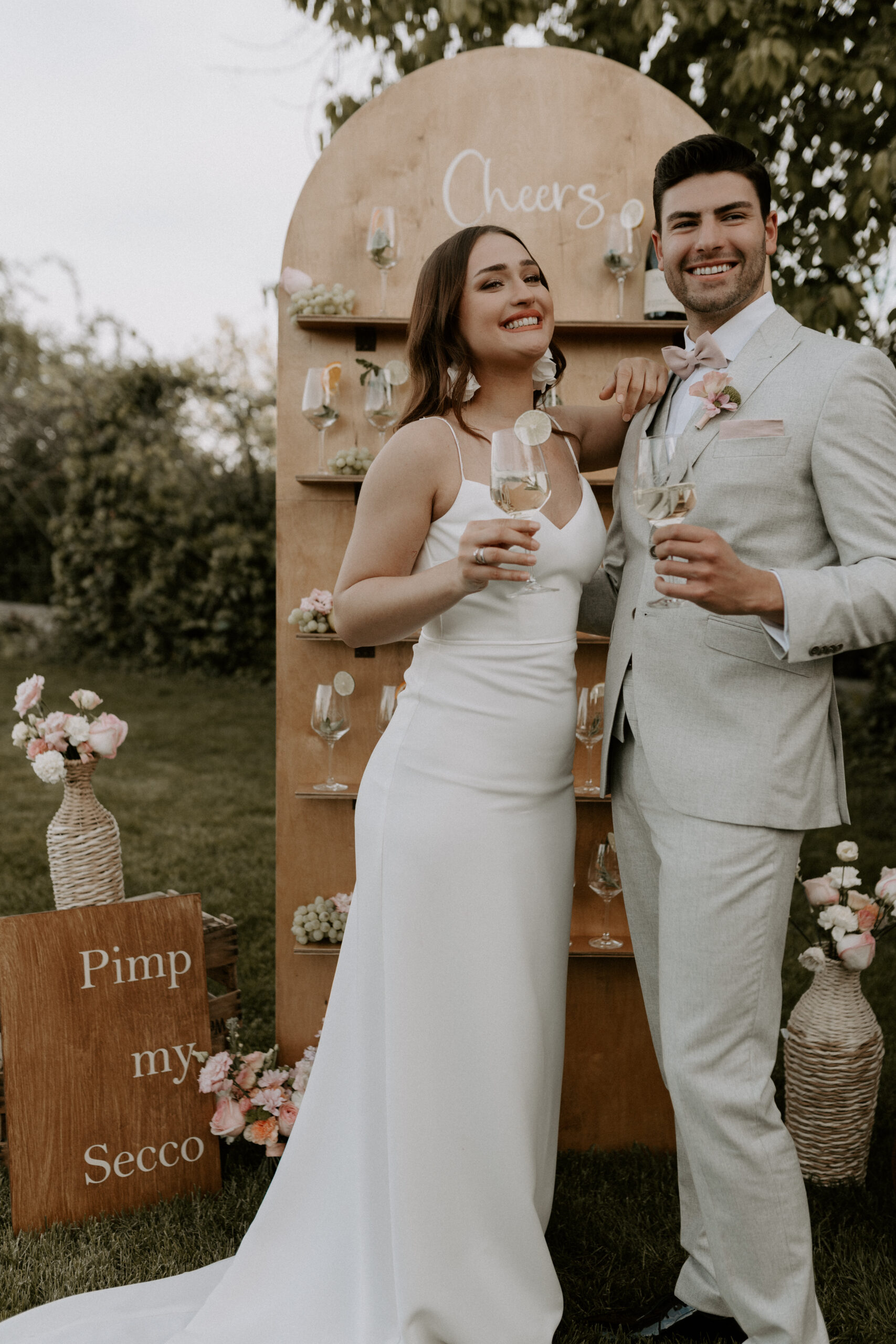Legt Decken oder Schals für eure Gäste bereit. Wenn ihr in den Weinbergen heiratet, denkt an festes Schuhwerk für eure Gäste oder legt Holzplanken aus. Kommuniziert den Dresscode klar: Eure Gäste sollten wissen, dass sie sich auf eine Feier im Freien einstellen müssen und entsprechend eine Jacke oder einen Schal mitbringen sollten.