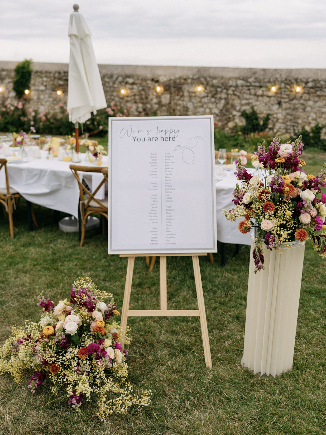Viele Paare setzen auf Dekoration, die den Charakter der Region betont. Greenery, Olivenzweige oder Eukalyptus passen gut zu Holz- und Steinelementen, die in Weingütern oft zu finden sind. Schlichte Arrangements mit viel Grün lassen die Räume offen wirken und harmonieren mit den Reben im Hintergrund.